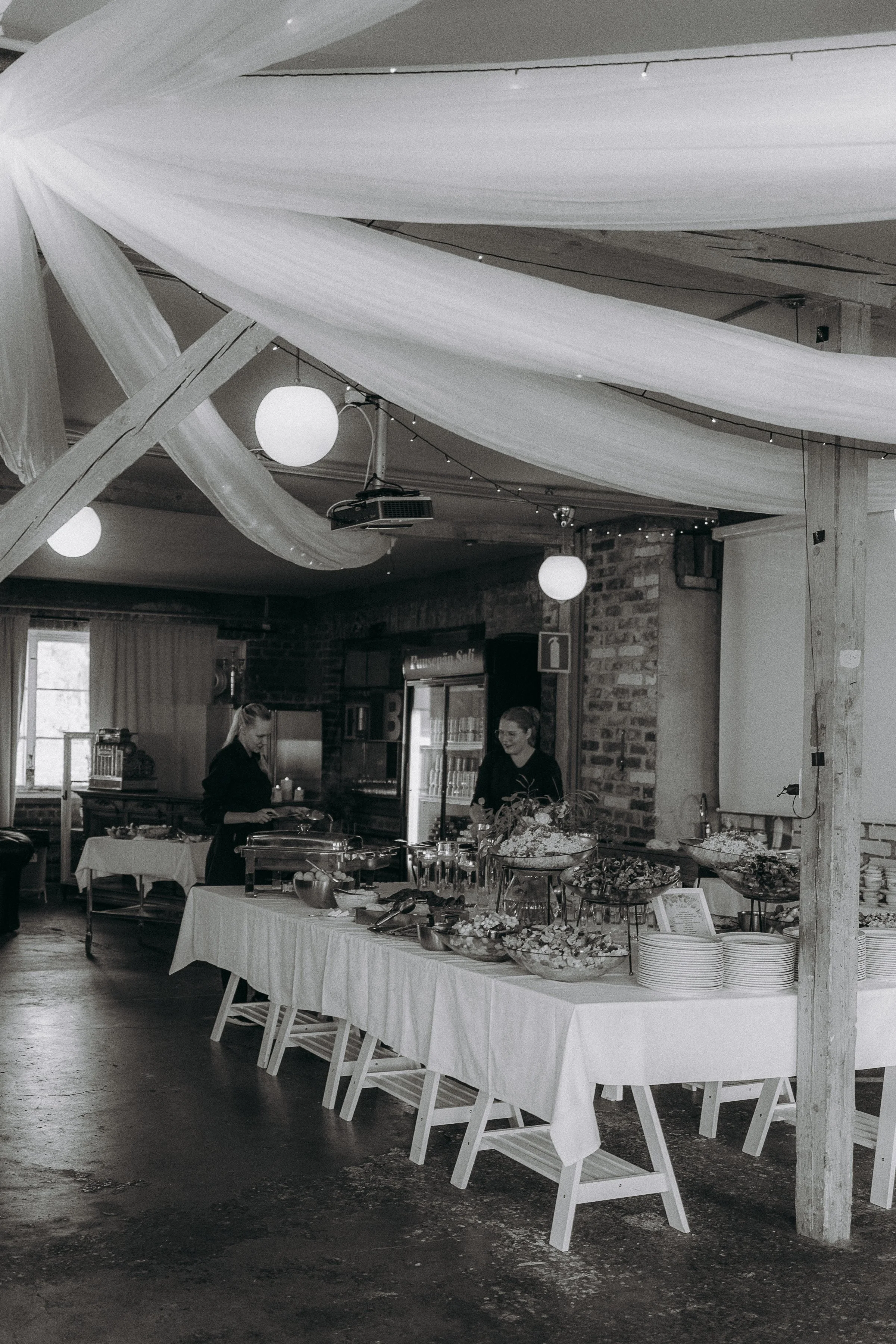 Puusepänsaliin mahtuu jopa 150 vierasta, ja omien juomien tuominen on sallittua, mikä antaa hääparille vapautta juhlan suunnitteluun. Uniikki miljöö näkyy vahvasti myös hääkuvissa ja luo juhlaan omanlaisensa rytmin.